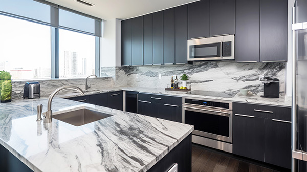 Marble offers stunning elegance, but it’s more porous and softer than other stones. It’s great for baking spaces or light-use kitchens but does require sealing and gentle care to avoid staining and etching.